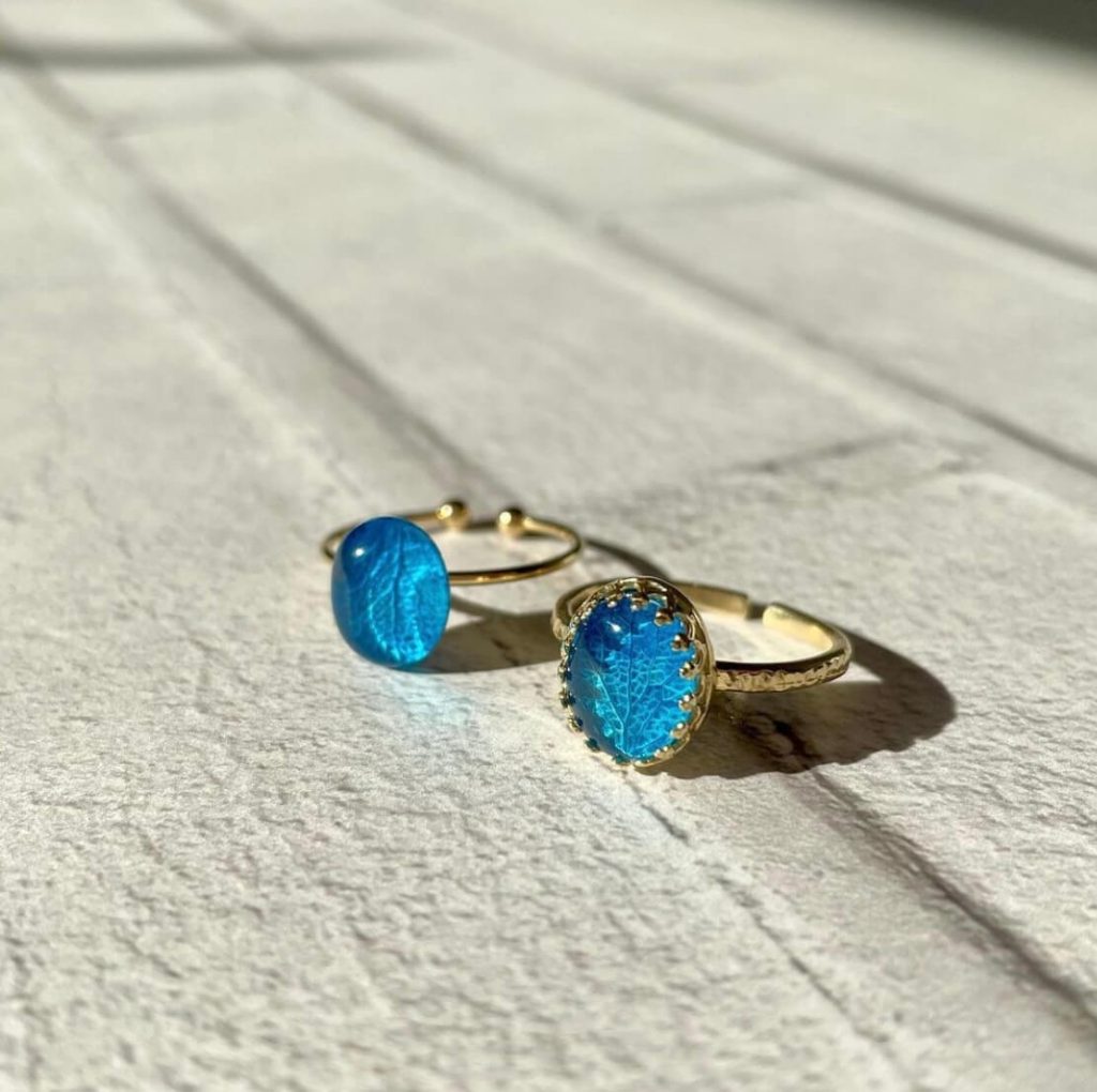 DaLiのレジンアクセサリーは、自然素材である花を使用しているため、塗料の選定には特別な配慮が必要です。花の種類や色、形状によって、最適な塗料の配合や使用方法が異なるため、細心の注意を払いながら調整しています。特に、日光に当たった際の色の変化や褪せ具合についても考慮しなければなりません。